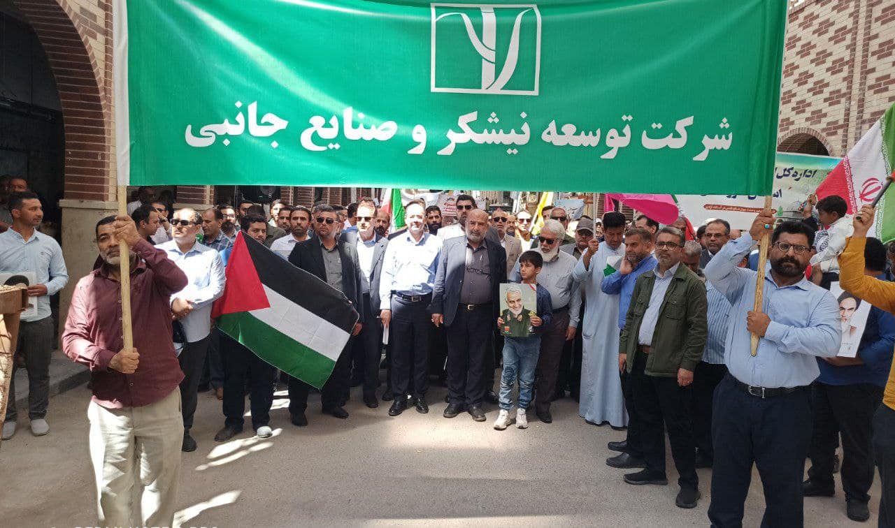 همه آمدند؛ حماسهآفرینی خانواده بزرگ شرکت نیشکر هفتتپه در راهپیمایی روز جهانی قدس