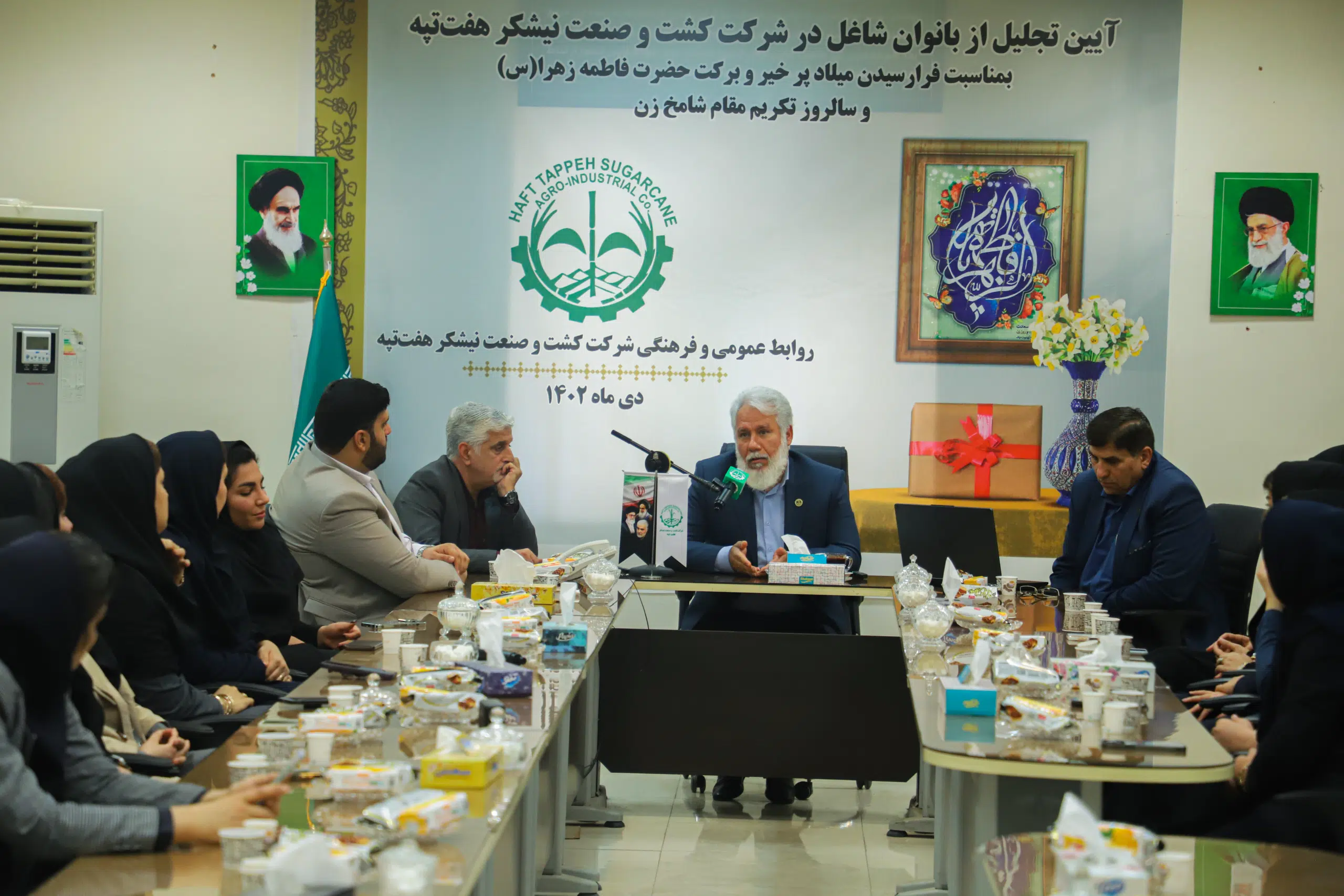 مهندس دورباشیزاده مدیرعامل و رئیس هیئت مدیره شرکت کشت و صنعت نیشکر هفتتپه در این نشست صمیمی ضمن تبریک میلاد با سعادت حضرت فاطمه زهرا(س) و گرامیداشت تکریم مقام شامخ زن و نیز تولد حضرت امام خمینی(ره) معمار کبیر انقلاب اسلامی، بیان داشت: مقام زن از دیدگاه اسلام و شریعت ما دارای مقام بسیار بالایی است و نصف جامعه را زنان تشکیل میدهند.