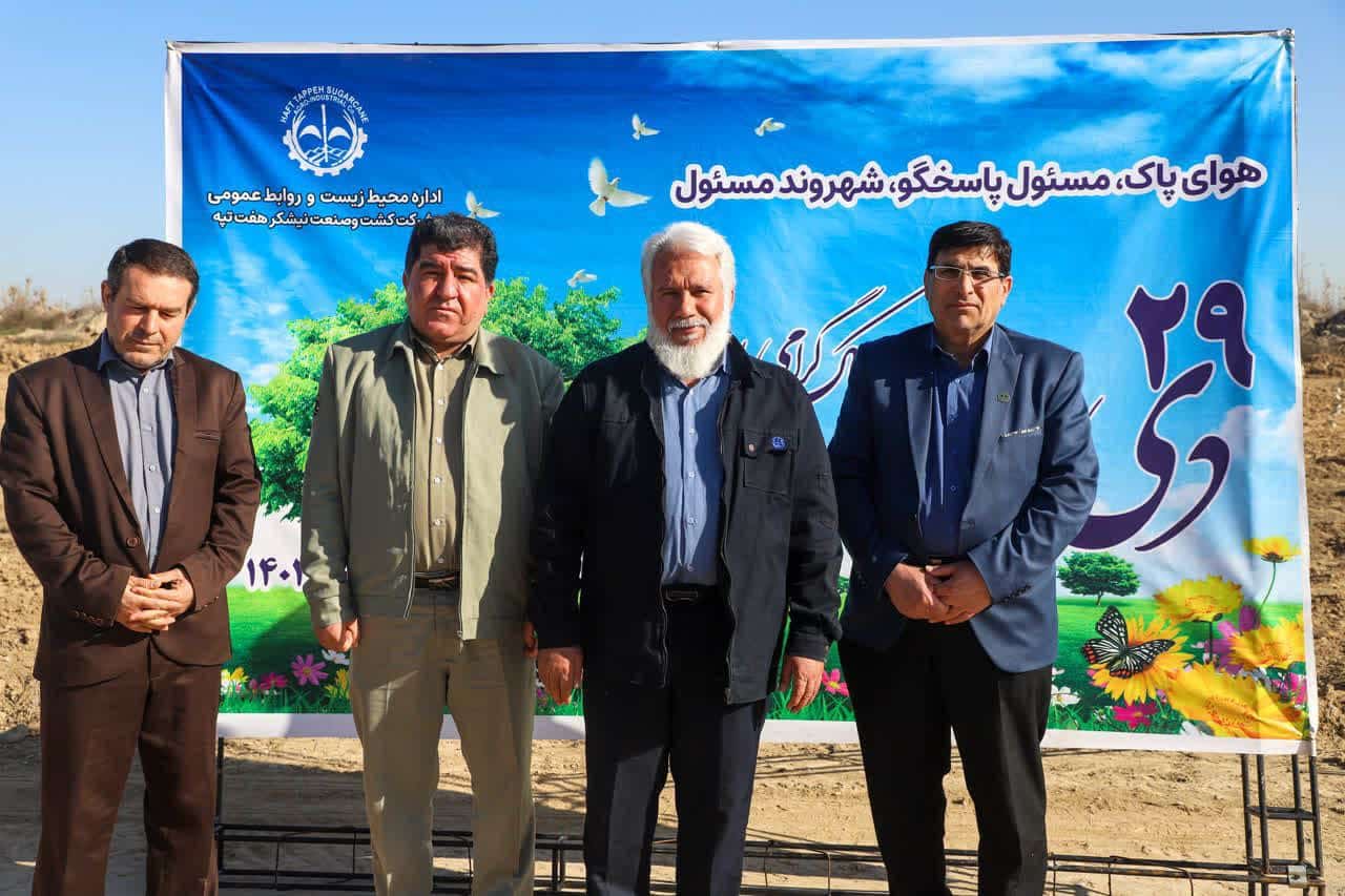 به گزارش روابط عمومی شرکت کشت و صنعت نیشکر هفتتپه، بمناسبت فرارسیدن ۲۹ دیماه روز هوای پاک، آیین نهال کاری در شرکت کشت و صنعت نیشکر هفتتپه با حضور مهندس علیرضا دورباشیزاده مدیرعامل و معاونین این شرکت و مهندس فیروز حاجی کلی رئیس محیط زیست شهرستان شوش برگزار شد.