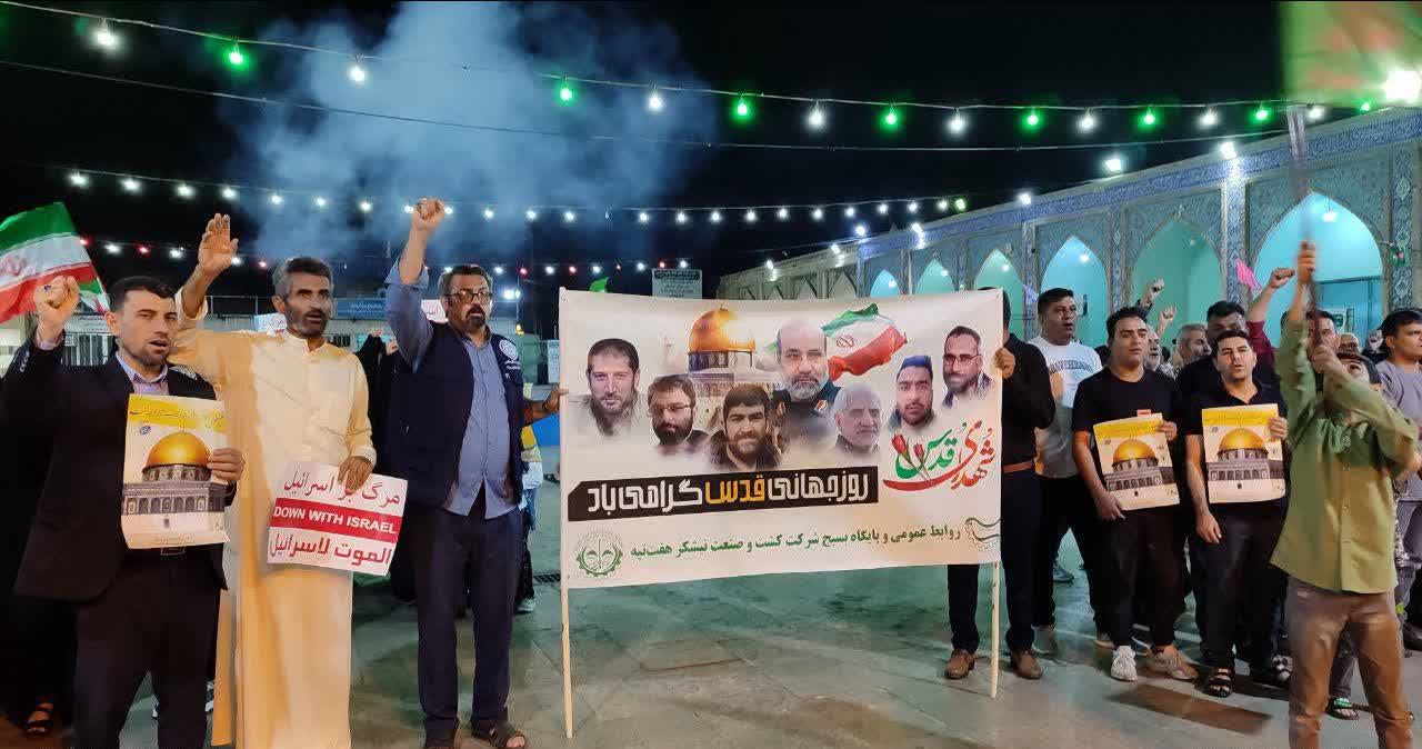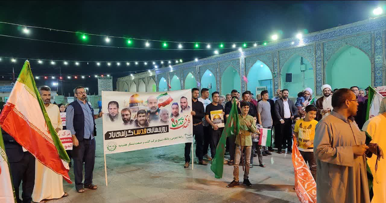 به گزارش روابط عمومی شرکت کشت و صنعت نیشکر هفتتپه، مردم ولایتمدار شوش دانیال شامگاه گذشته در حرم حضرت دانیال(ع) در حمایت از اقدام اخیر سپاه پاسداران علیه رژیم غاصب صهیونیستی، تجمع کردند.
