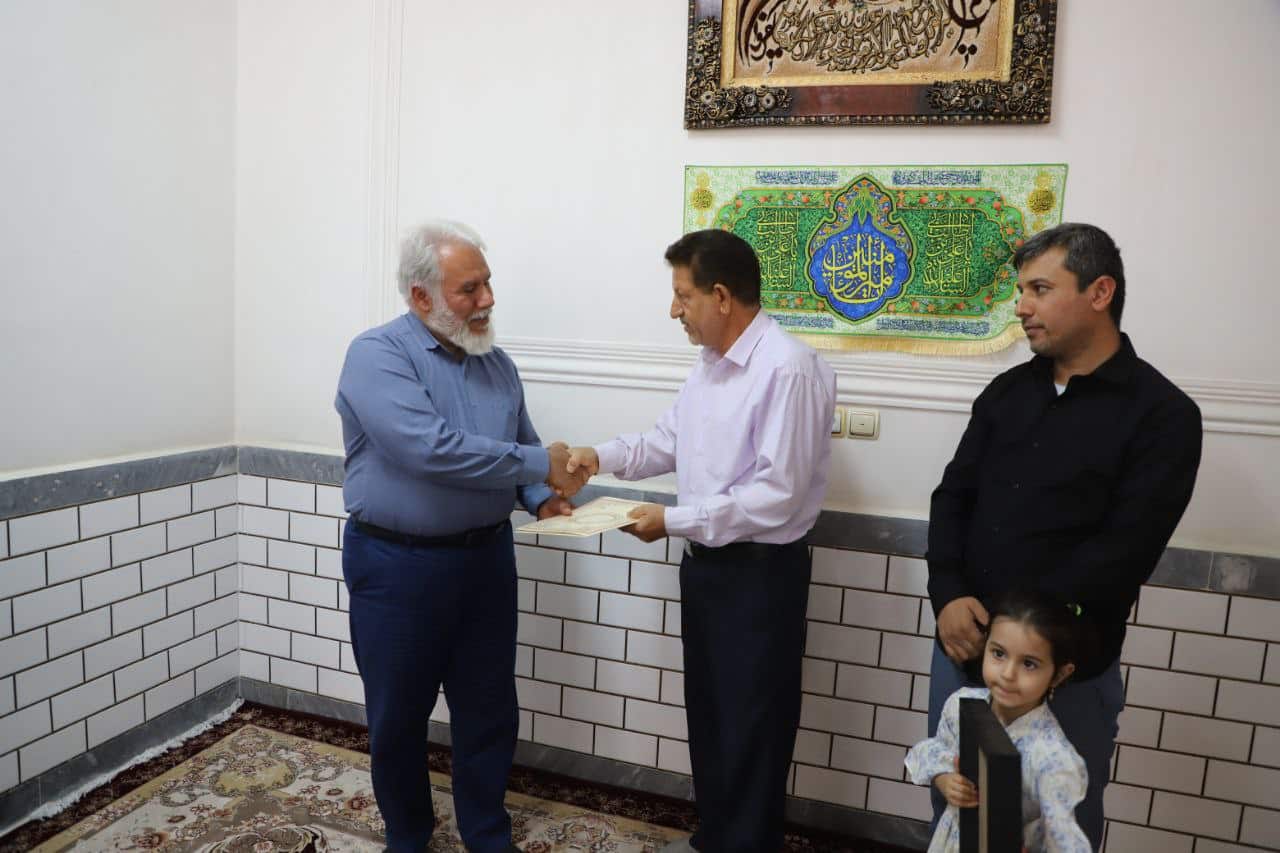 در پایان این دیدار صمیمی، جناب آقای مهندس دورباشیزاده با اهدای لوح تقدیر از رشادتهای شهید مدافع حرم و خانواده معظم شهید حیاری تجلیل بعمل آورد.