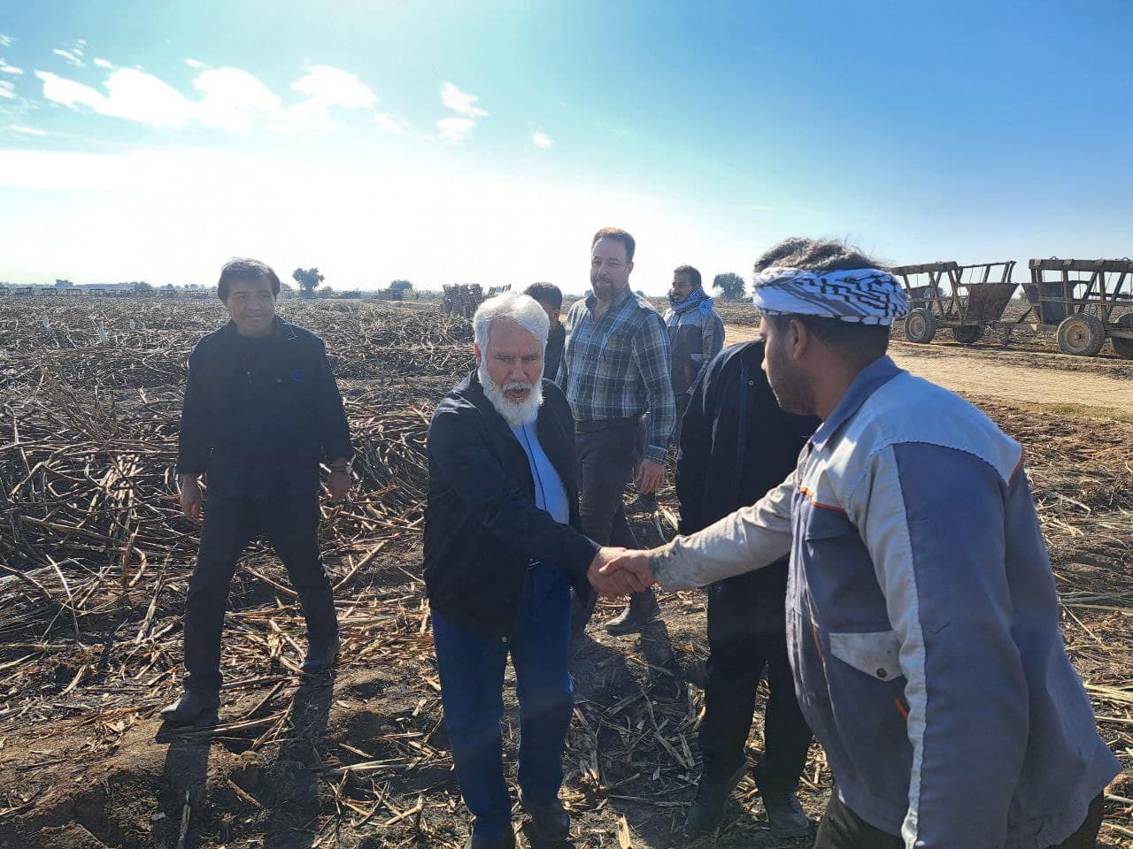 🔹در این بازدید مهندس دورباشی زاده با حضور میدانی در مزارع مختلف، روند برداشت نیشکر بصورت دستی و مکانیزه را نیز مورد بررسی قرار داد و ضمن دیدار چهره به چهره با کارگران پرتلاش نی بری و همچنین کارگران برداشت مکانیزه، از تلاش ها و زحمات مجاهدان تولید قدردانی نمود.