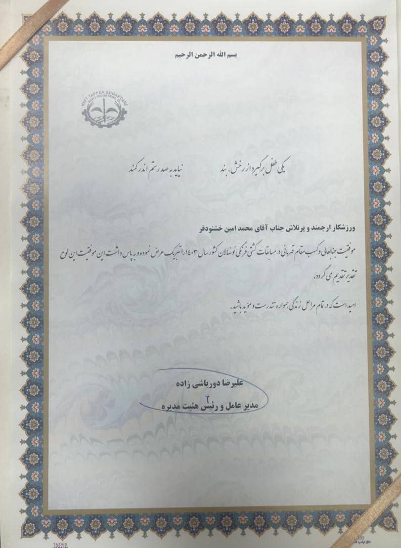 🔹گفتنی است محمد امین خشنود فر فرزند آقای فرهاد خشنودفر از کارکنان شرکت نیشکر هفت تپه می باشد که اخیرا در مسابقات قهرمانی کشتی فرنگی در کشور توانست مقام اول را کسب نماید.