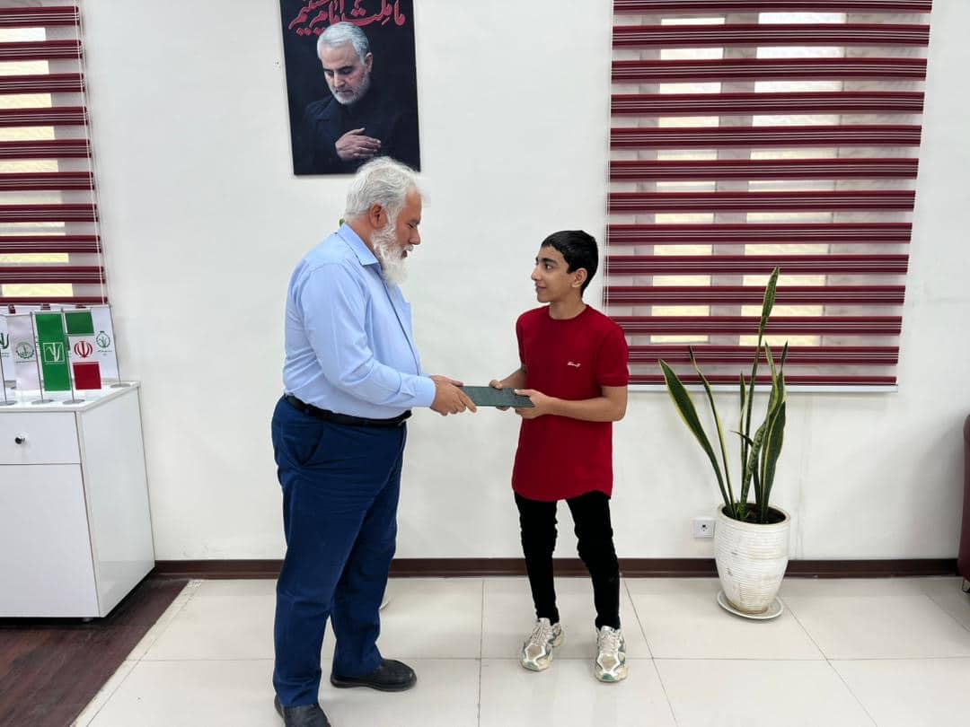 قهرمان مسابقات نونهالان کشتی فرنگی کشور با حضور در دفتر مدیرعامل نیشکر هفت تپه، تجلیل شد