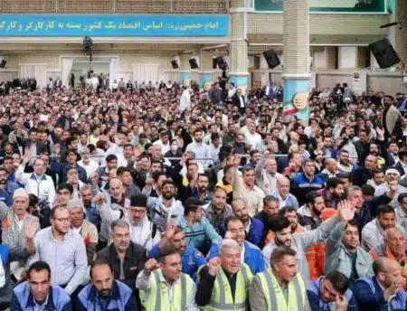 تجدید میثاق کارگران ولایتمدار هفتتپه با ولی امر مسلمین جهان/ حضور دو تن از کارگران نیشکر هفتتپه در دیدار جمعی از کارگران کشور با مقام معظم رهبری بمناسبت روز کارگر