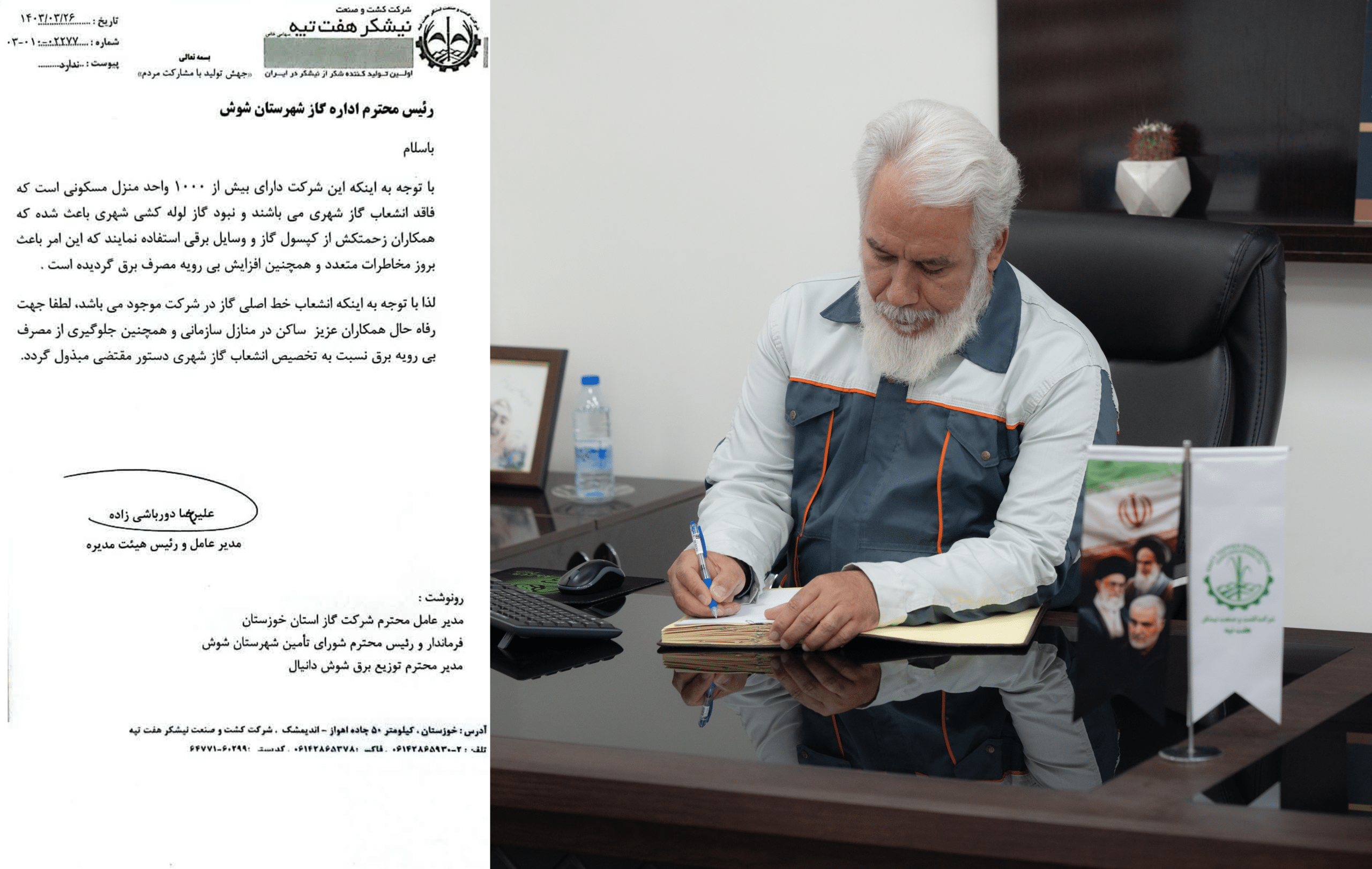 در ادامه پیگیریها و در راستای حل مشکلات موجود در هفتتپه، مهندس علیرضا دورباشیزاده مدیرعامل و رئیس هیئت مدیره شرکت کشت و صنعت نیشکر هفتتپه طی نامهای، از ریاست اداره گاز درخواست انشعاب گاز شهری برای منازل هفتتپه مینماید. اگر این امر صورت بگیرد یک حرکتی ماندگار در تاریخ هفتتپه خواهد بود که همت و جدیت شرکت گاز را میطلبد.