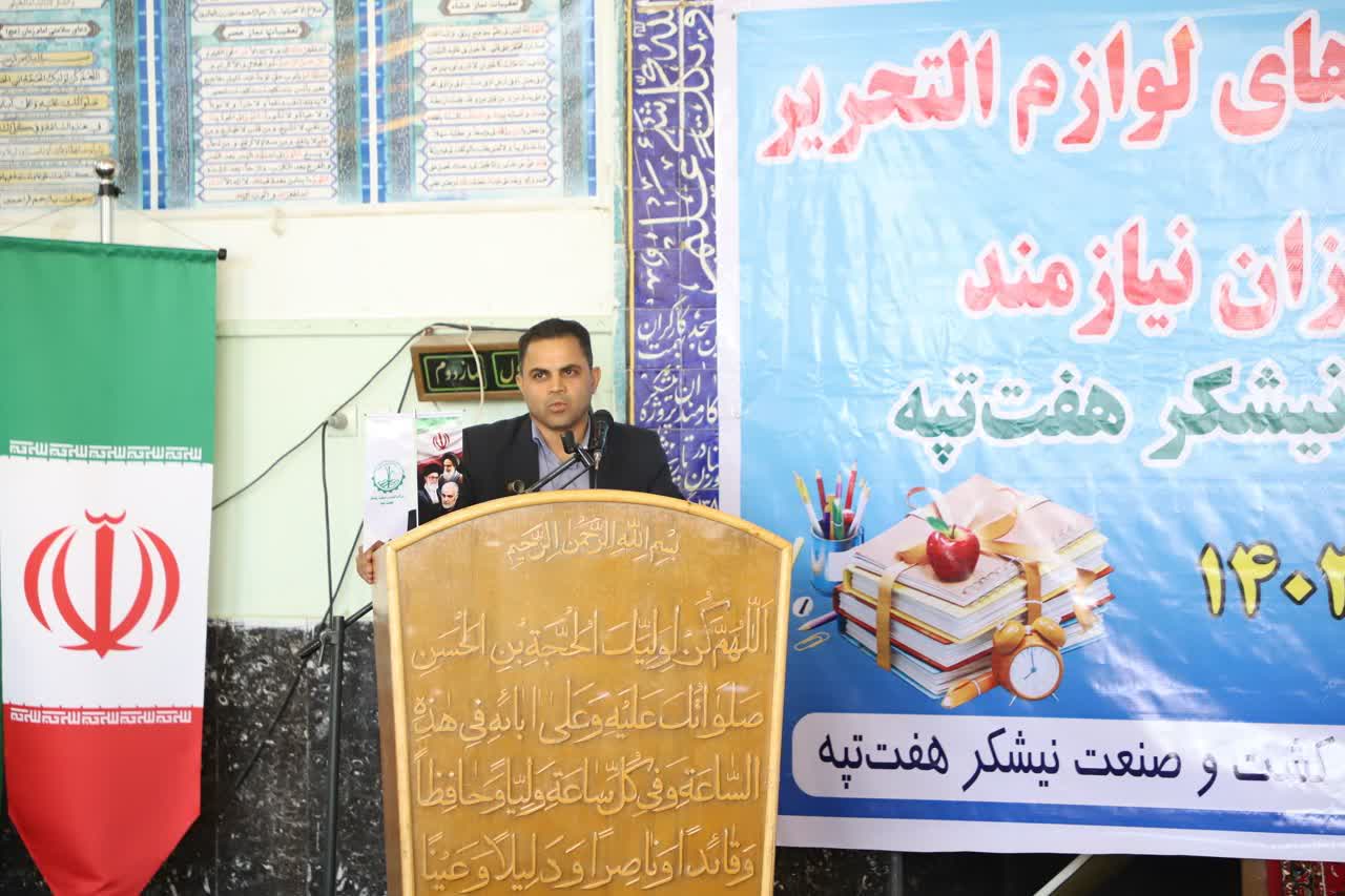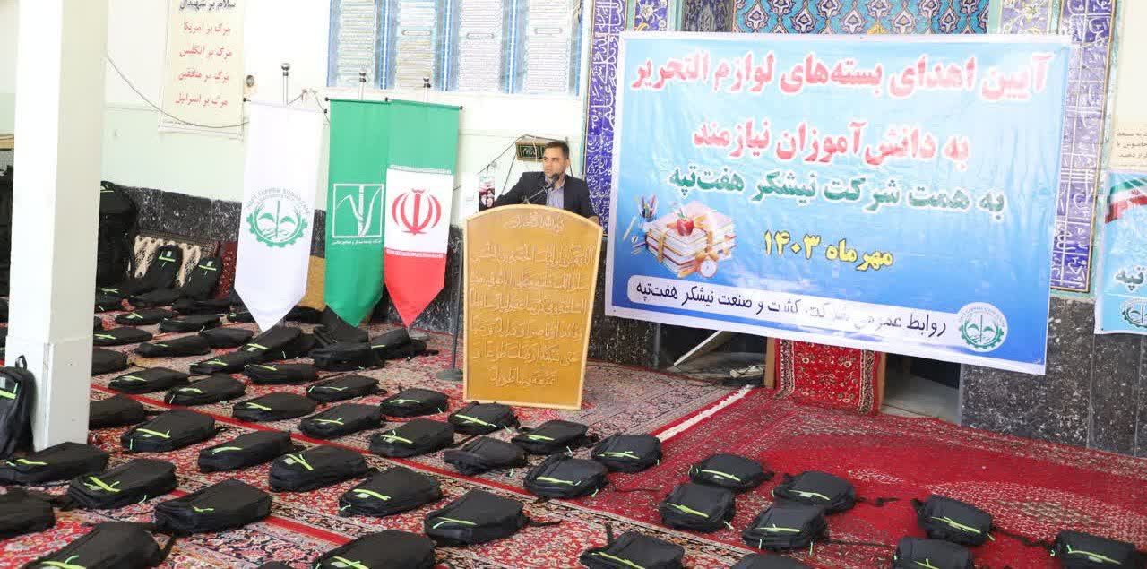 برگزاری آیین اهدای ۱۰۰۰ بسته لوازم التحریر به دانشآموزان نیازمند با حمایتهای شرکت توسعه نیشکر و پیگیریهای مدیرعامل شرکت نیشکر هفتتپه به مناطق پیرامونی این شرکت