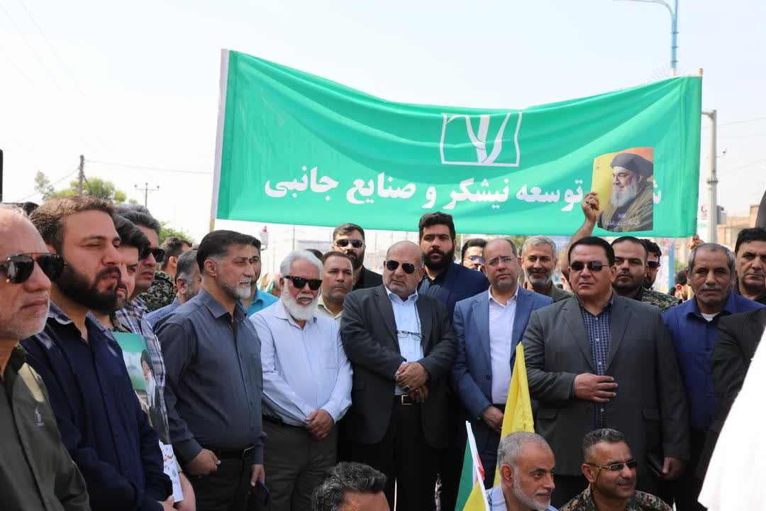 حضور جناب آقای مهندس دورباشی زاده مدیرعامل شرکت کشت و صنعت نیشکر هفت تپه در راهپیمایی روز قدس در اهواز